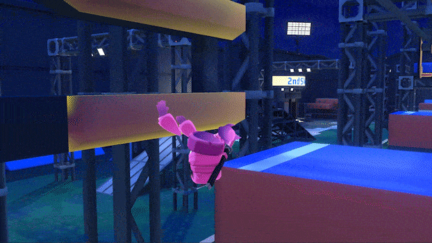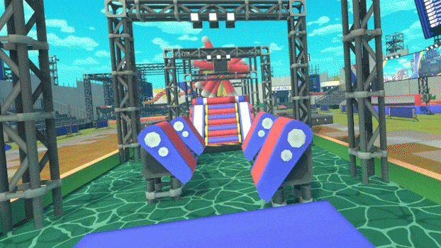 Hold your controllers and swing your arms back and forth to dash through the stage with style!