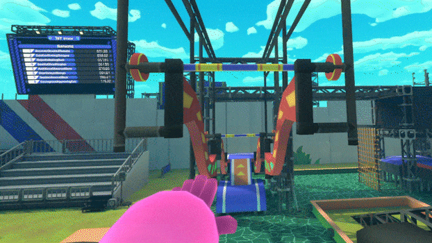 Use the controller’s grip to grab onto various spots throughout the stage!